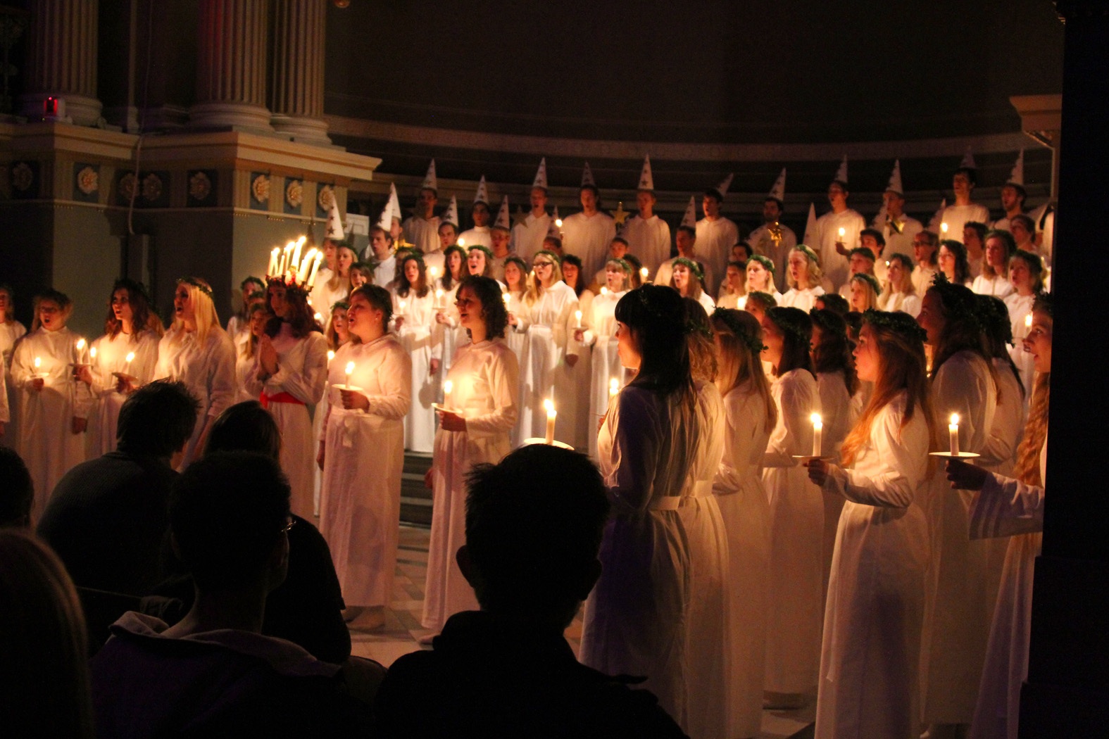 I tisdags klarades 3 jättefina Luciatåg av i universitetsaulan, vi fick slutsålt på alla konserterna, runt 900 personer har nu fått ordentlig Lucia och Julstämning 🙂