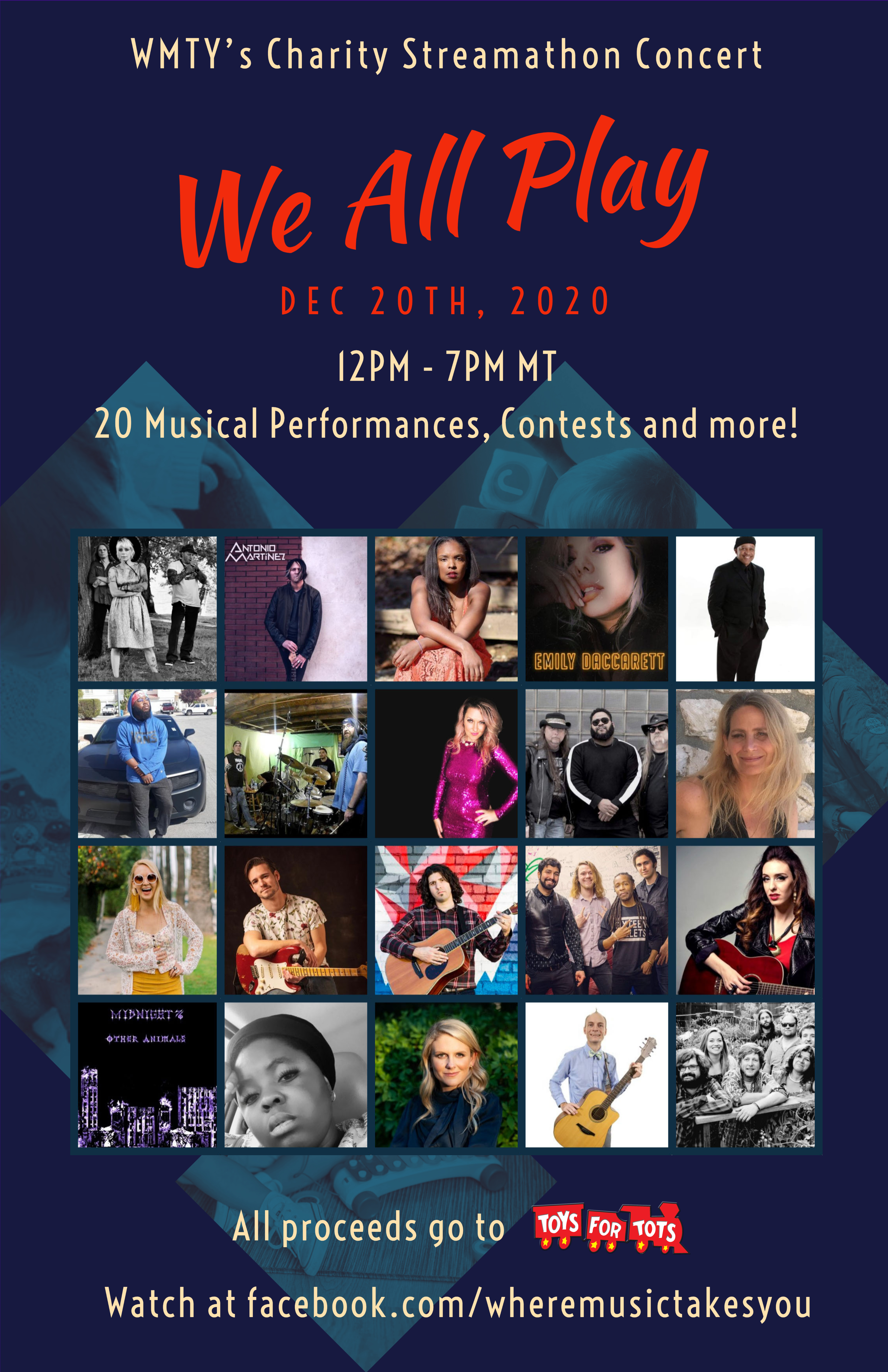 I’m very excited to take part in Where Music Takes You’s Charity Streamathon Concert for the Toys For Tots Foundation this Sunday, the 20th of December.