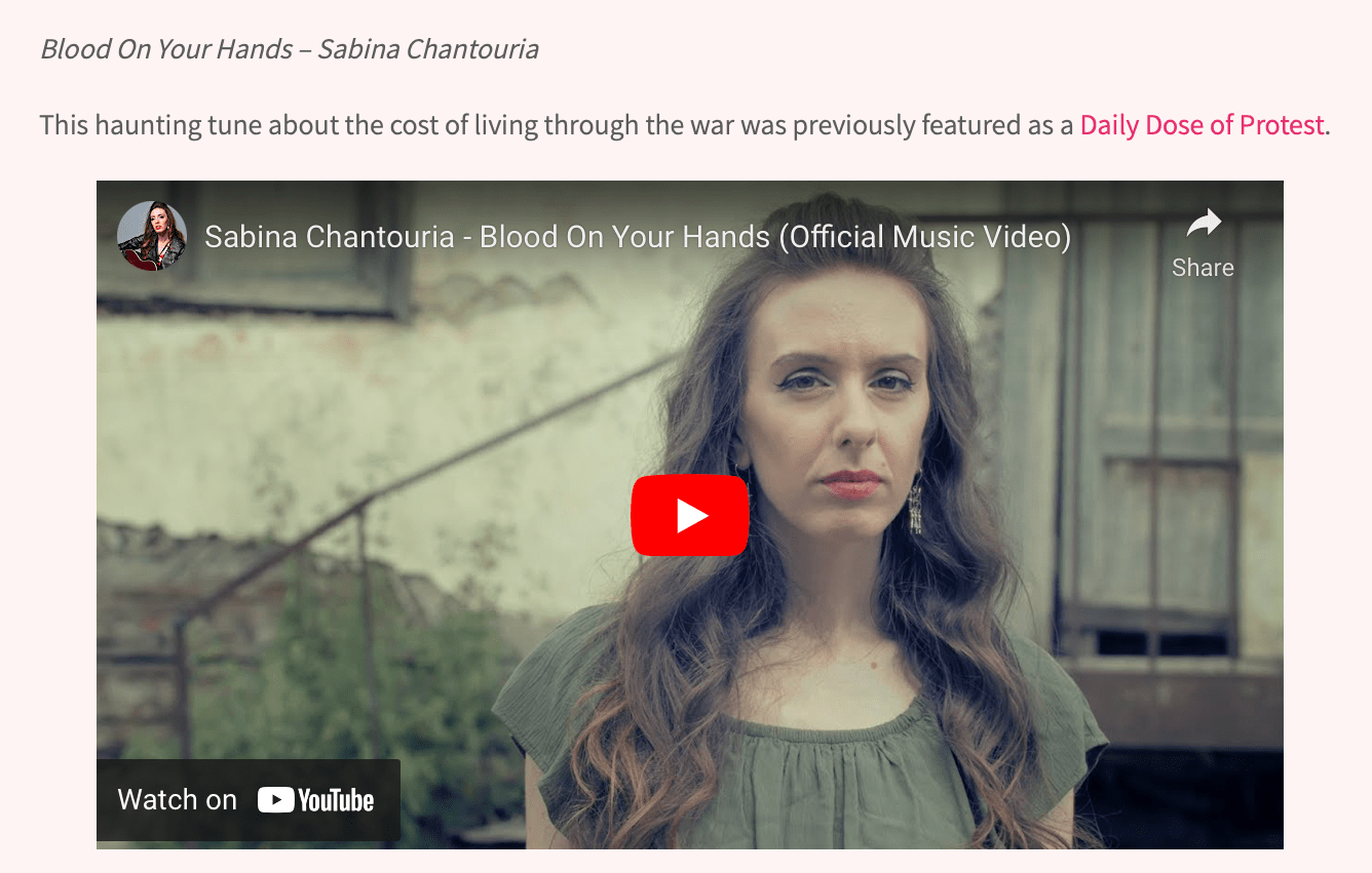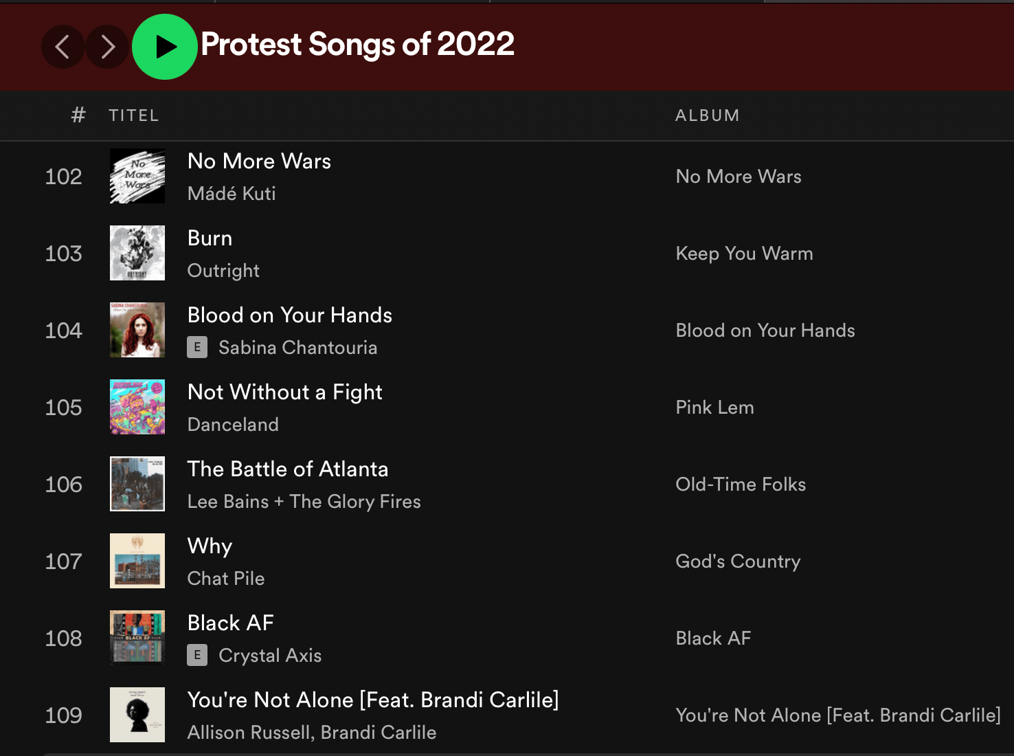 Honored to be featured in The Ongoing History of Protest Songs – A Month of Protest: August and in the Spotify playlist – Protest Songs of 2022
