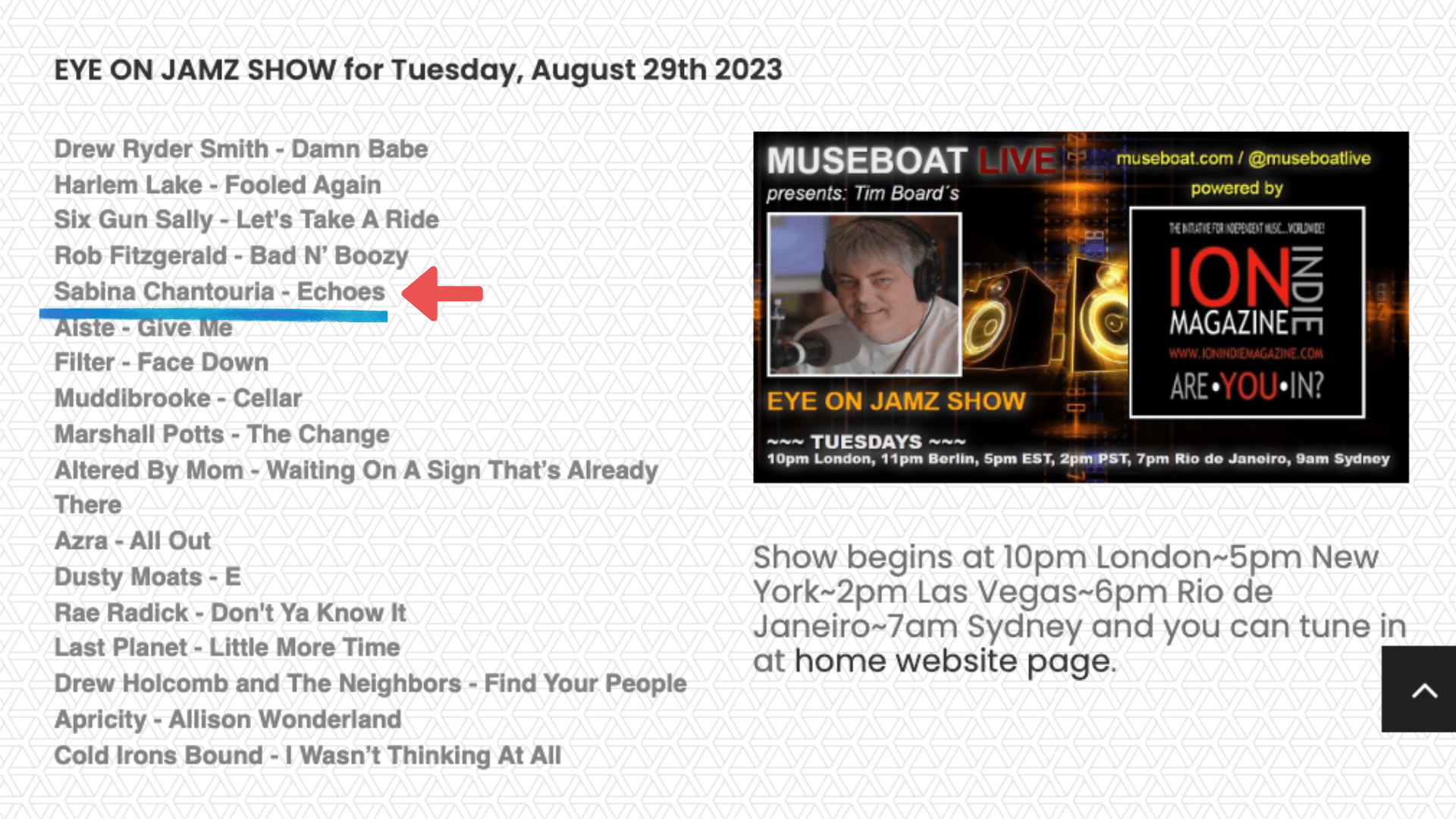 Excited to be on Eye on Jamz Show – Museboat Live with Echoes tonight 10 pm (BST) – tune in here