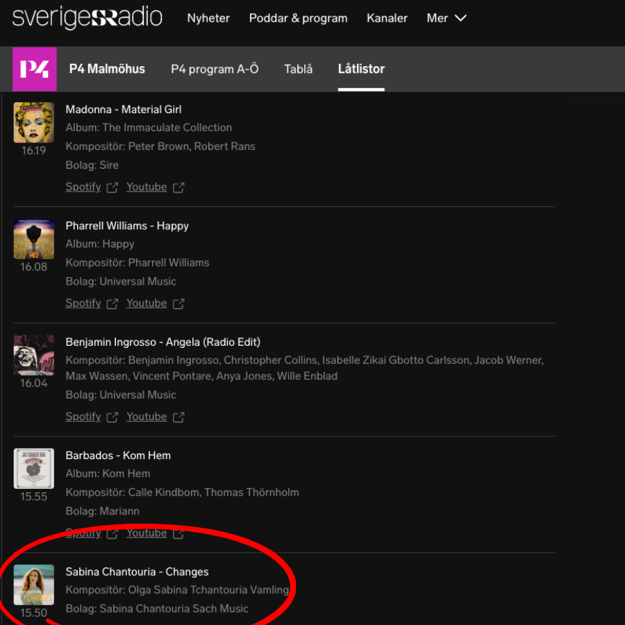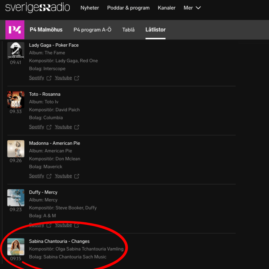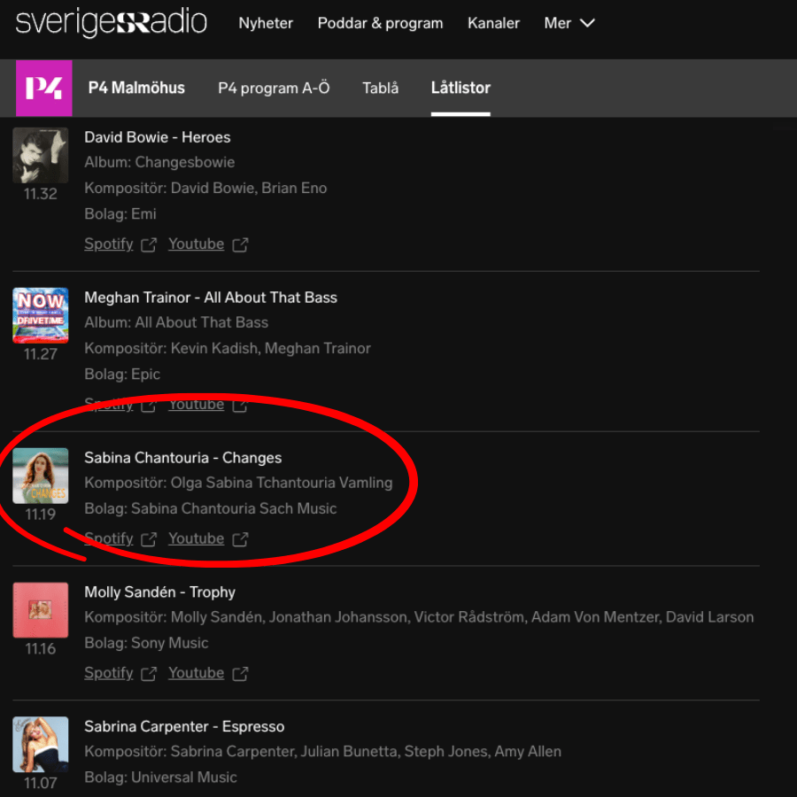 My new single ‘Changes’ is in rotation on P4—Sweden’s biggest radio network! P4 Malmöhus covers southern Sweden, and it’s such a great feeling to hear my song reaching new listeners across the region!