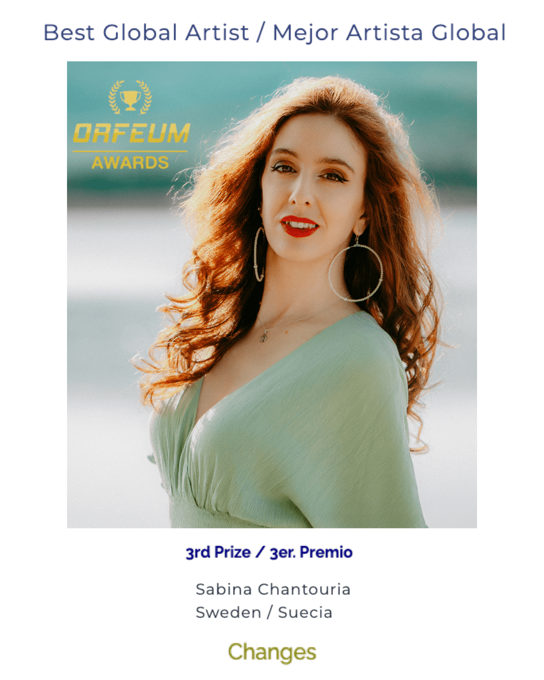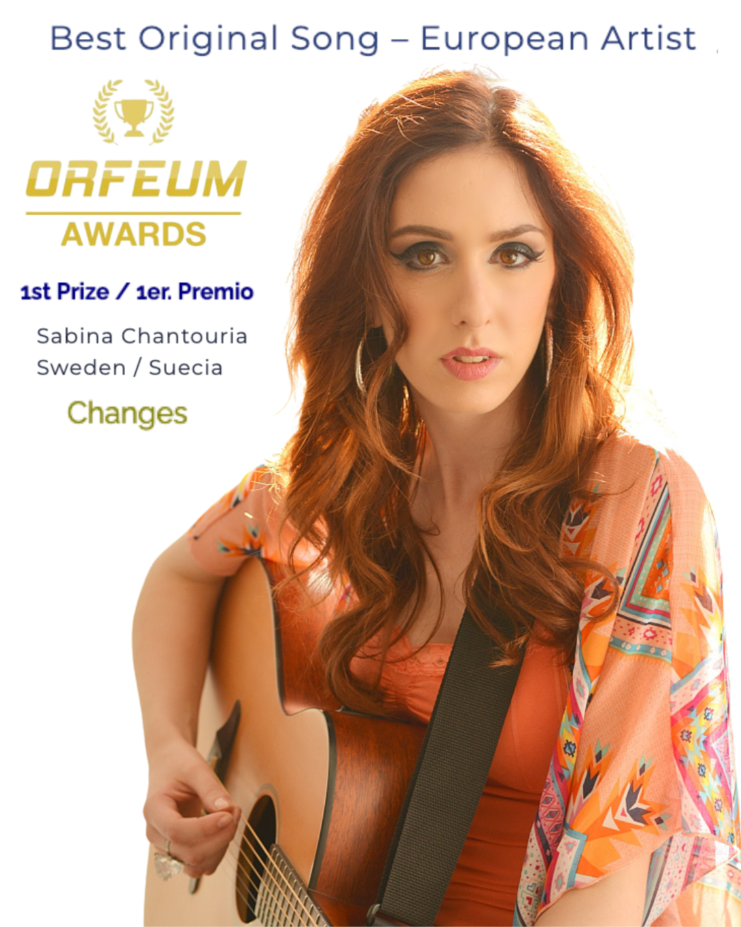 Proud to share that I won 1st prize Best Original Song by European Artist with Changes at the ORFEUM Awards, presented by the European Music Festivals Organization (ORFEUM)